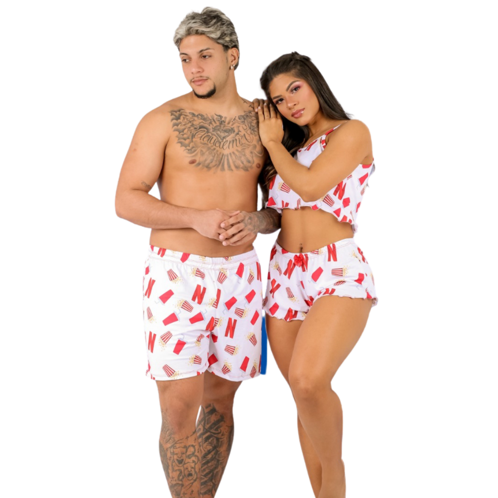 KIT casal Mozão temático Netflix baby doll e samba canção namorados