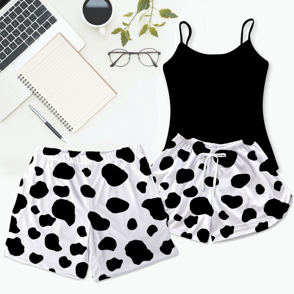 Kit Pijama Casal Mozão Baby Doll Feminino Cropped Preto + Shorts Masculino Samba Canção Cerveja