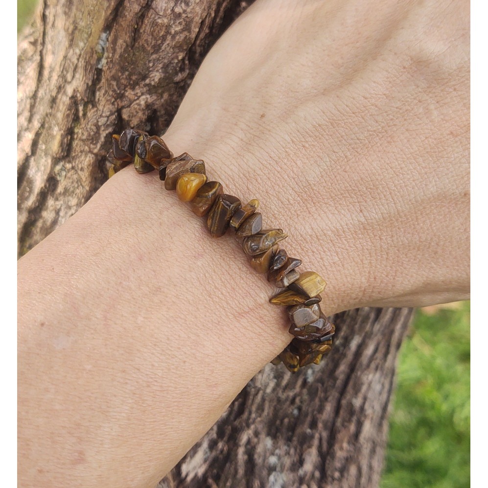 Pulseira de Olho de Tigre em Pedra Natural Unissex Cristais Esotéricos