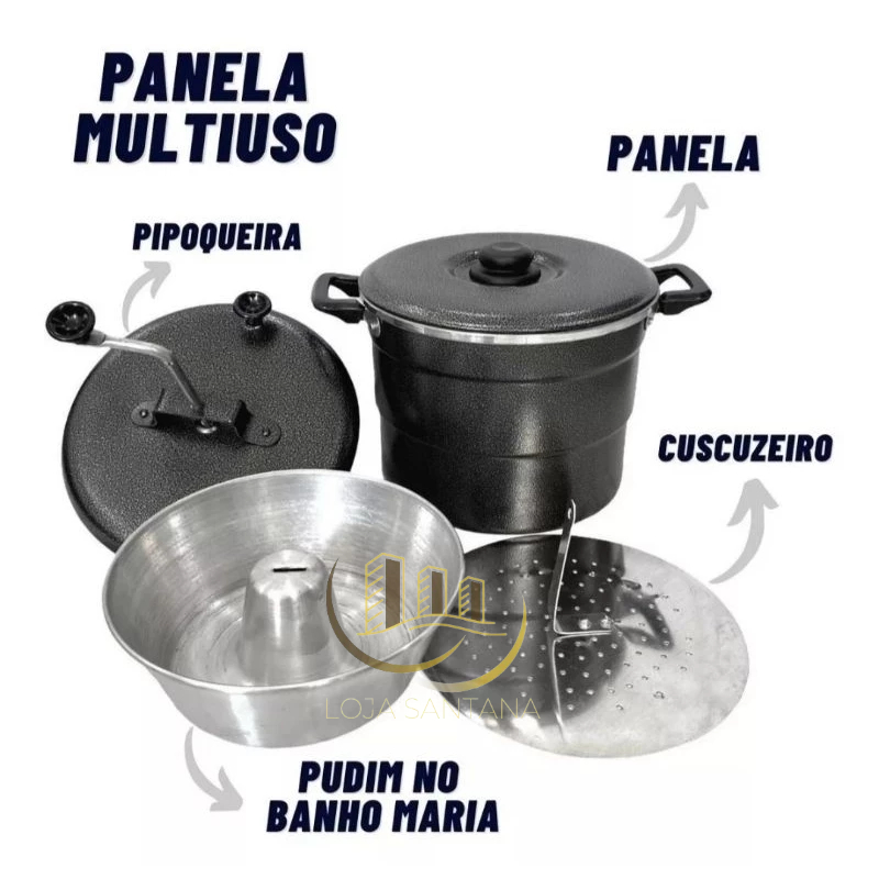 Cuscuzeiro 4 em 1 Panela Multiuso Pipoqueira Caçarola Faz Pudim No Banho Maria Preta Polida