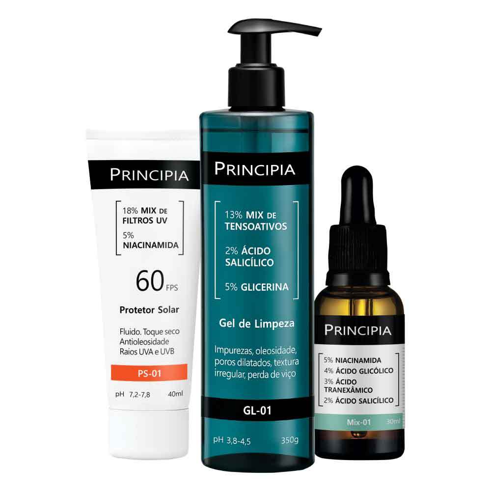 Principia Kit Anti-Acne - Trio com Gel de Limpeza GL-01 + Sérum Mix-01 + Protetor Solar Facial PS-01