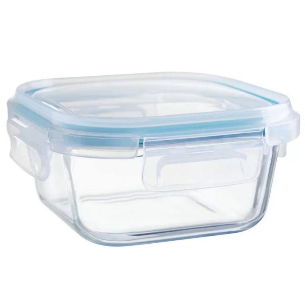 Pote De Vidro Hermético Quadrado 800ml C/ Tampa Plástica 4 Travas Marmita Fitness