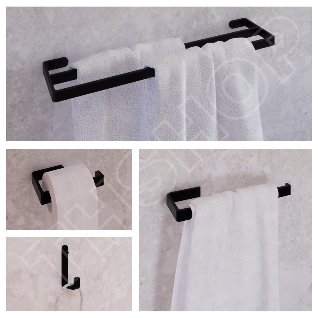 Kit Suportes para Banheiro com 4 Acessórios Toalheiro Duplo | Decoração