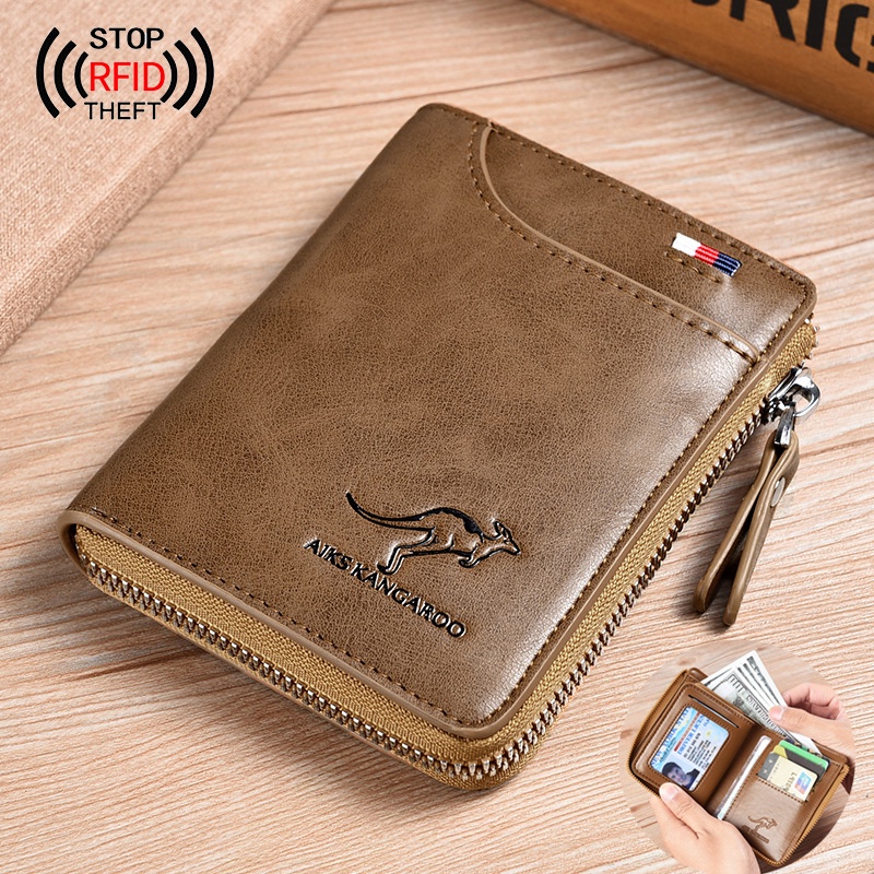 Dompet Lelaki Anti RFID Titular Do Cartão Carteira De Couro Genuíno Dos Homens Moda Curto Vertical Com Três Dobras Para