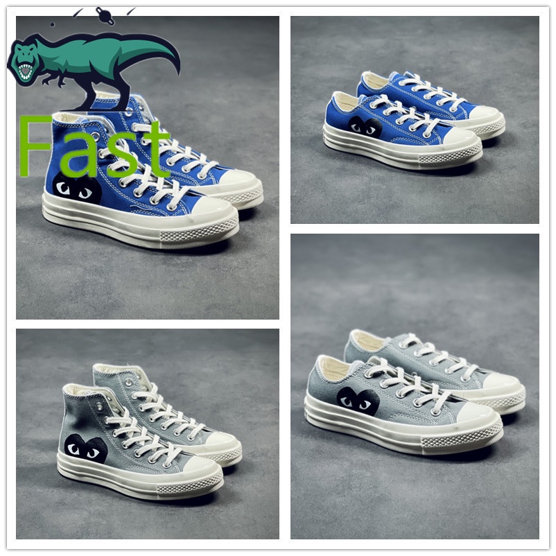Con44se x Cdg Comme des Gar Ons Jogar Chuck 70 Esporte casual Sapatos De Lona Desgaste a Mais Neutro Cinza De Ferro Maioriamente Azul royal Clássico design Simples Estilo