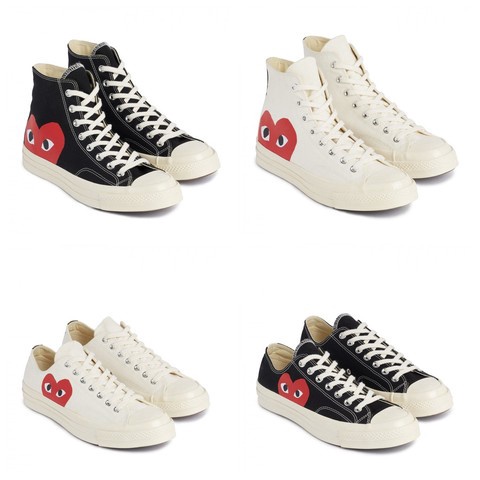 converse X comme des garcons Sapatos De Lona cdg paly Preto E Branco Homens Mulheres Padrão De Amor