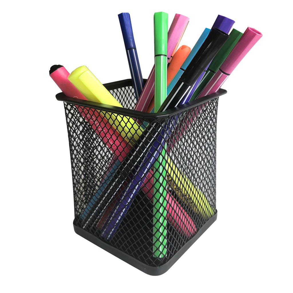 Organizador Porta Canetas Lápis Para Mesa Escritório Aramado Pinceis Preto Quadrado