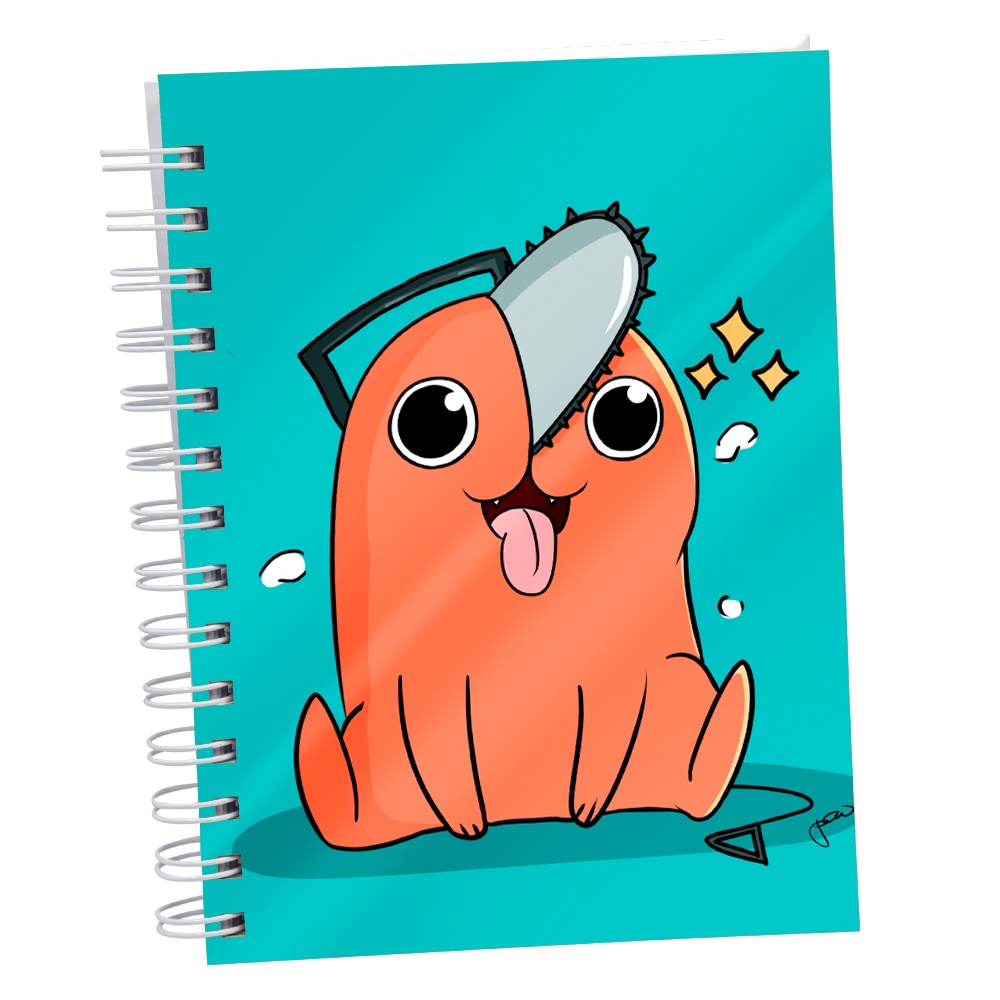 Agenda Caderno Pochita Chainsaw Man Chibie Sketchbook sem Pauta Capa Dura Brinhante 80 Folhas