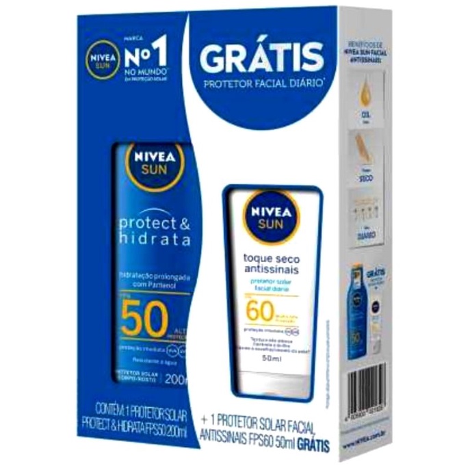 Kit Nivea Sun Protetor Solar FP50 com 200ml + Protetor Solar rosto Antissinais FFPS30 com 50ml