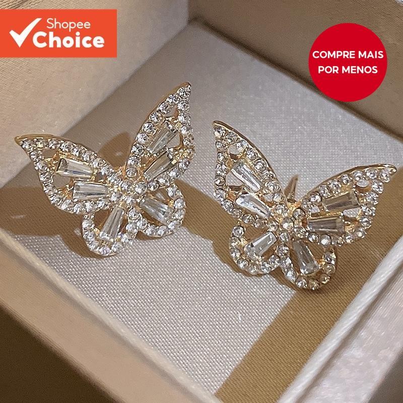 Conjunto De 2 Peças De Agulha De Prata Com Brincos De Borboleta De Diamante , Elegantes E Sofisticados , Leves , Luxuoso