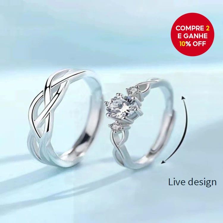 Conjunto De 2 Peças De Anéis Ajustáveis Para Casal , Alianças De Casamento Com Diamante De Cristal