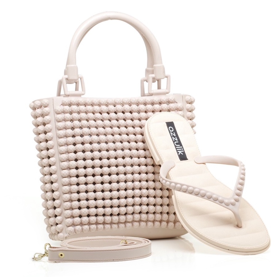 Kit Praia Bolsa Mão + Chinelo Pérola Feminina Injetada Em Pvc Barato Várias Cores