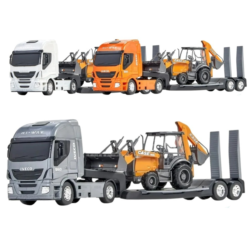 Miniatura Caminhão Plataforma com Retroescavadeira Case ENVIO IMEDIATO Usual Brinquedos