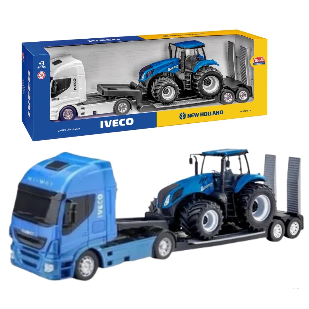 Caminhão New Holland Iveco Plataforma com Trator Agriculture T8 Miniatura- Usual