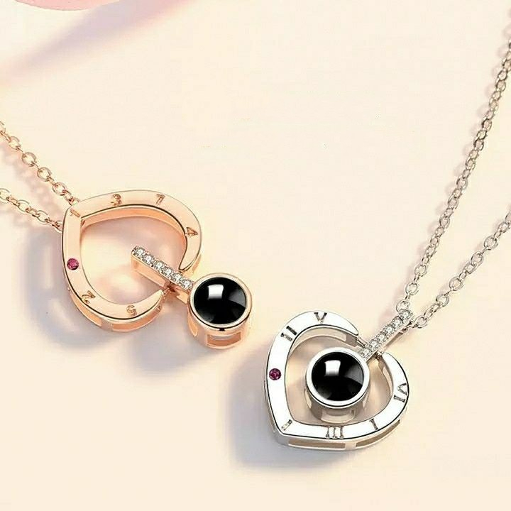 Moda coração projeção 100 idiomas eu te amo colar clássico amor romântico memória casal jóias presente do dia dos namorados