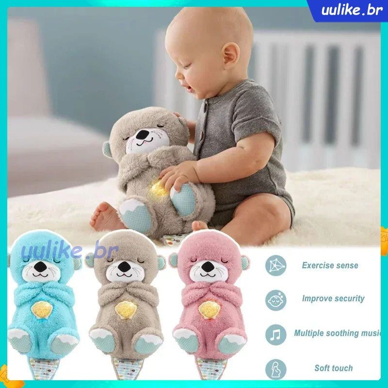 🌟PRONTO🌟Brinquedo De Pelúcia Lontra Respiratória Com Luz E Som Recém-Nascido Companheiro Do Sono Bebê Almofada Macia Recheada Boneca Dia Dos Namorados