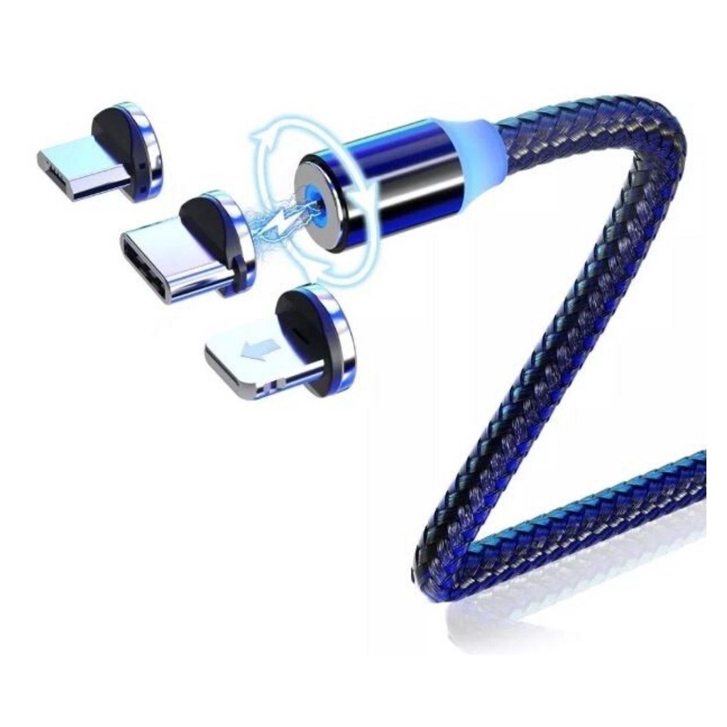 Cabo Carregador Magnético TOP Usb 3 Em 1 iPhone, Android V8 e Tipo C 360g 345
