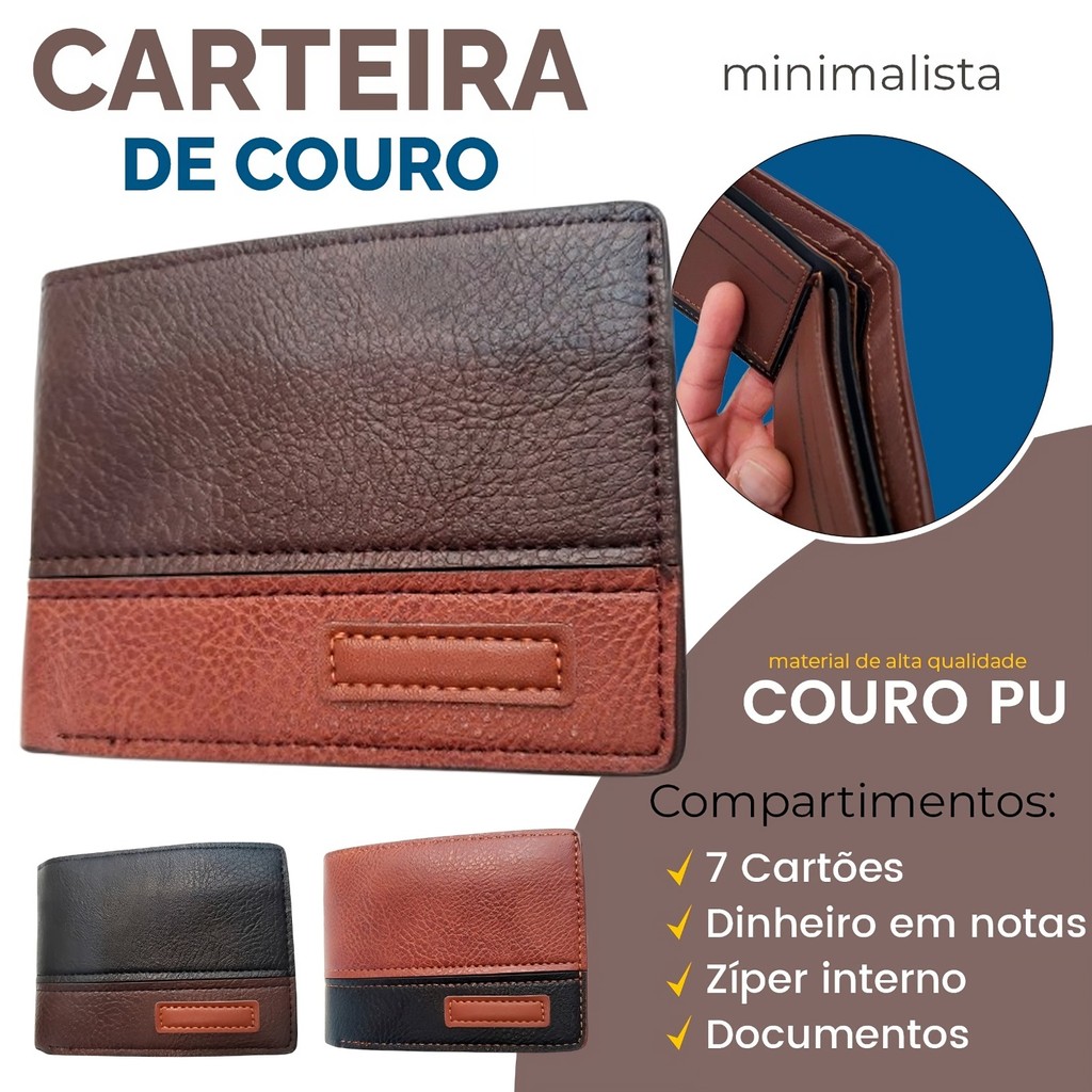 WLT CARTEIRA MASCULINA DE COURO LEGÍTIMO PORTA CARTÃO GRANDE CABE RG CNH ALTA QUALIDADE PREMIUM