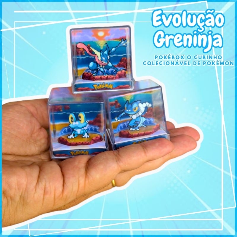 Mini Cubinho Diorama Pokémon Evolução Greninja Ash