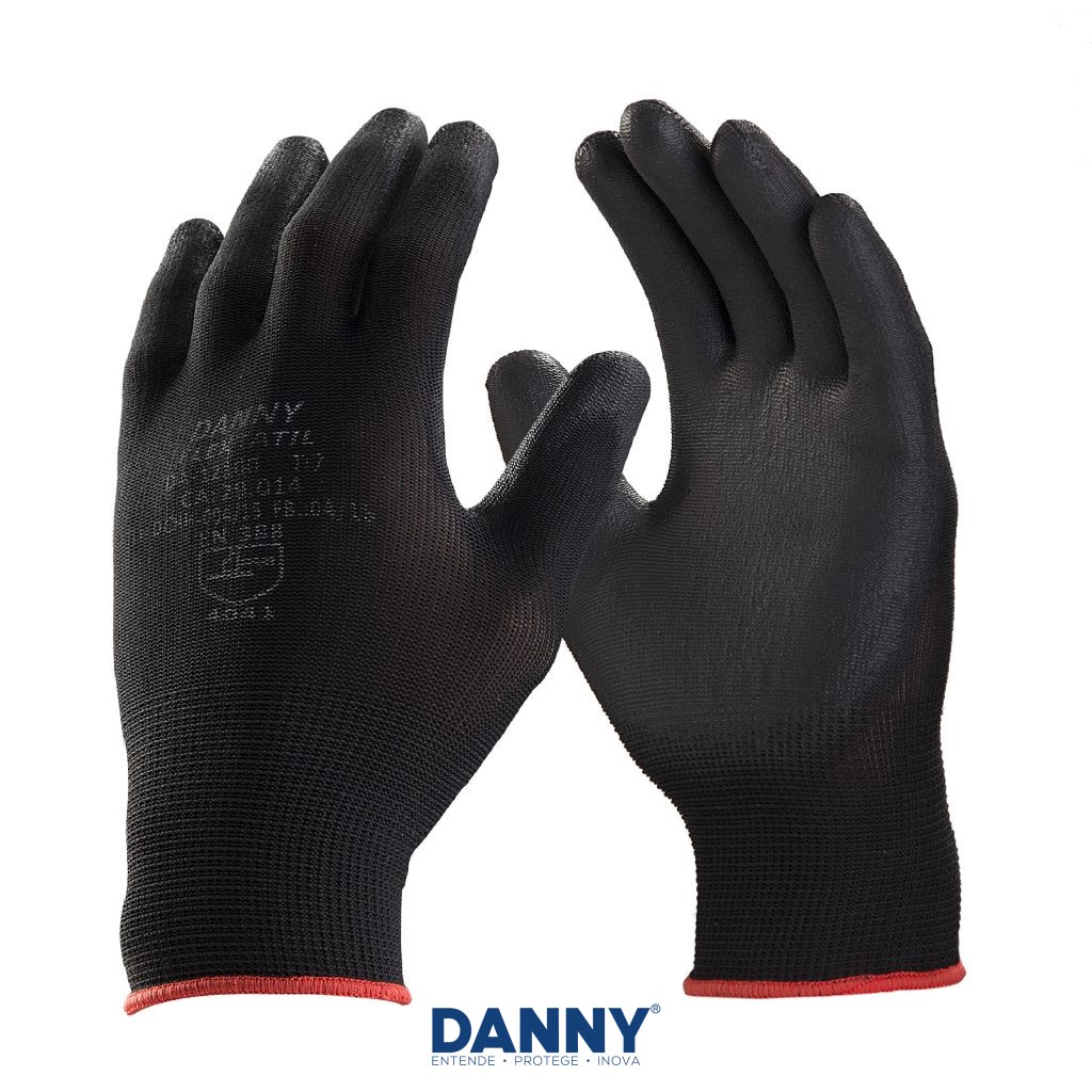 Luva EPI CA Segurança Multitato Preta PU Mecânico Pedreiro Eletricista Jardinagem Serviços Gerais Antiestatica