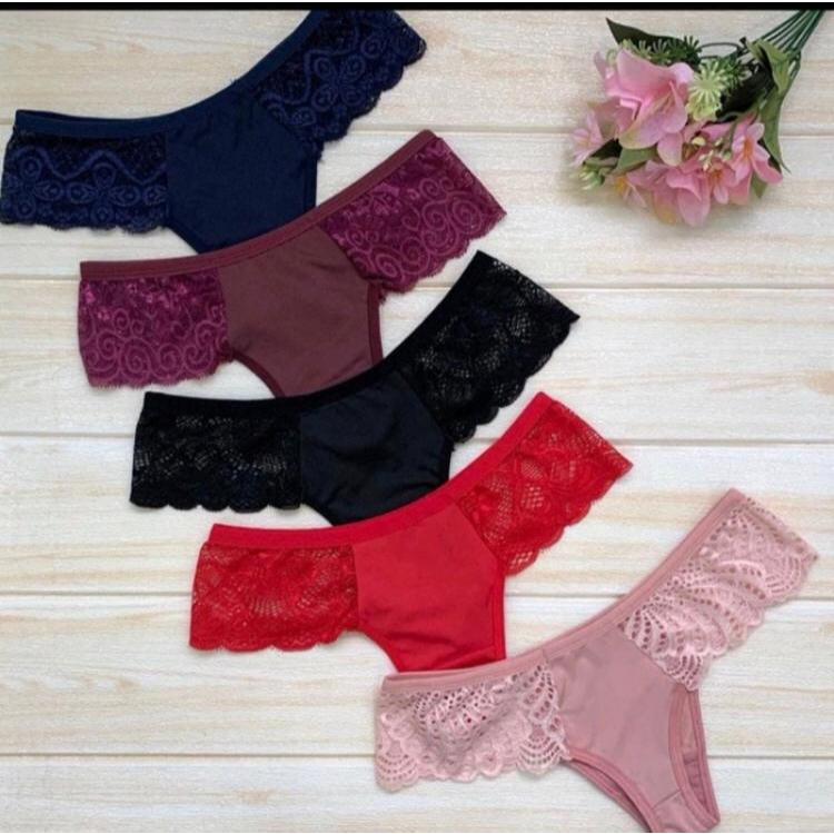 Kit 5 Calcinhas Fio Duplo Barato Com Forro de Algodão Sensual Preço Revenda