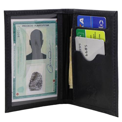 Carteira Masculina Slim Em Couro Legítimo Cnh Porta Cartões Preto
