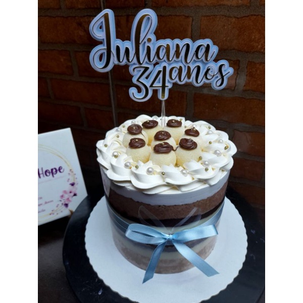 Topo Topper de bolo personalizado 3D com nome, idade e flores