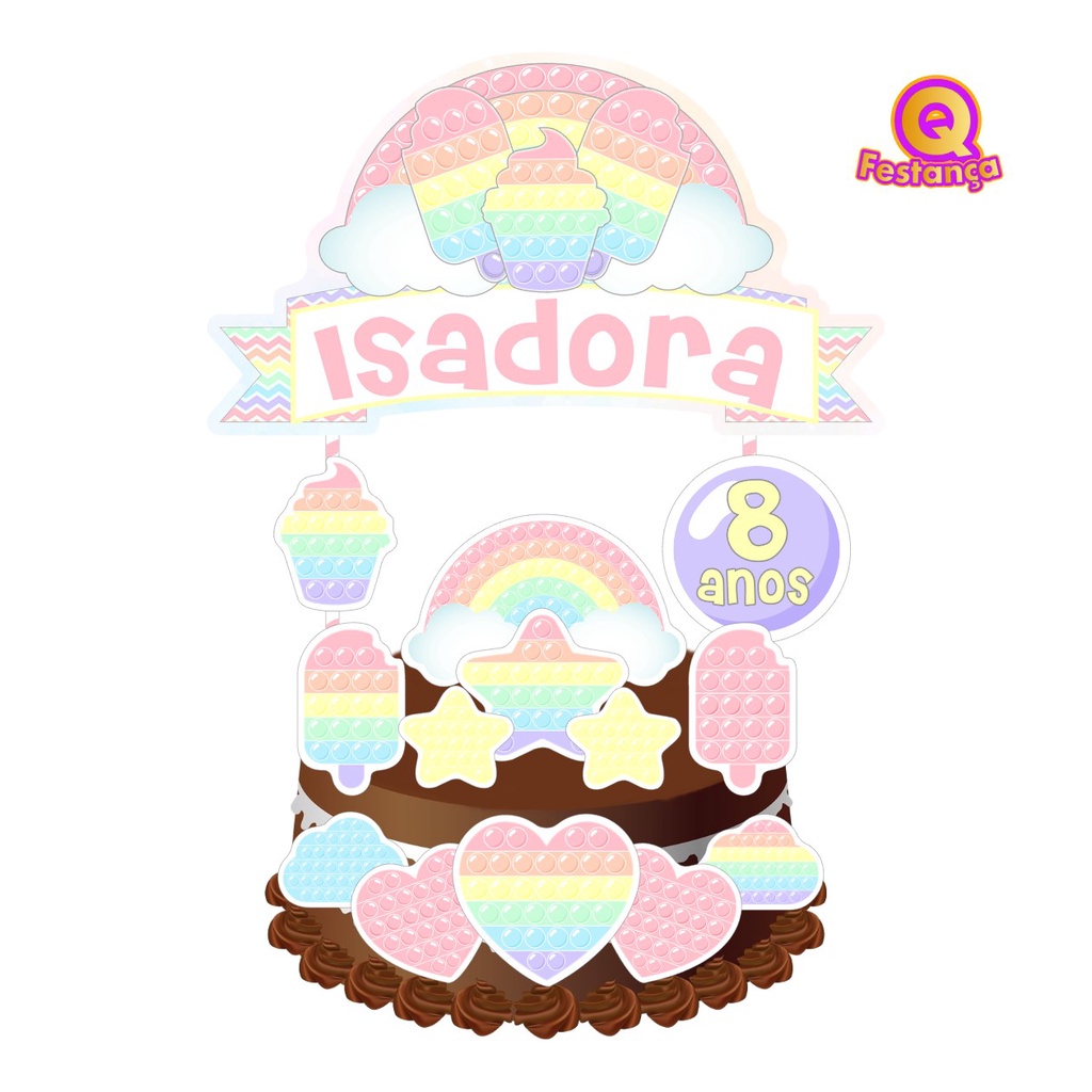 Topo de Bolo Pop It Fidget Finger Toy - Personalizado com Nome e Idade