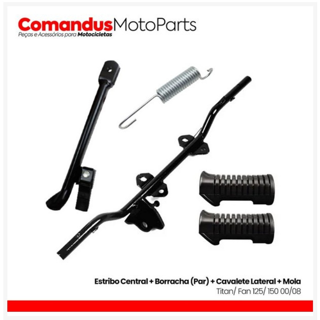 Estribo Central + Cavalete Lateral + Mola + Borracha do Estribo Titan Fan Mix 125 150 160