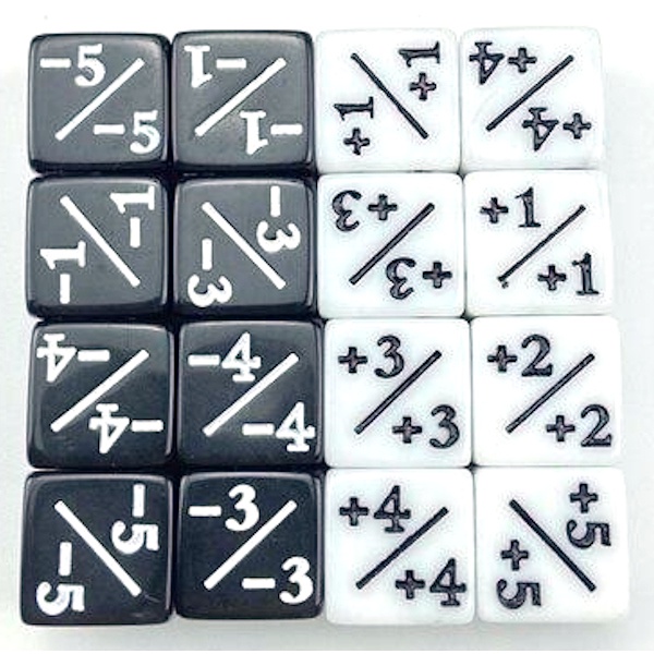 Dado Marcador (+1/+1) // (-1/-1) - Kit com 5 Unidades, Dados D6 - Kit com 5 unidades - RPG, Magic The Gathering, MTG, etc