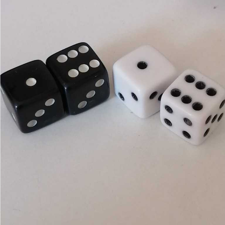 Dados para tabuleiro 1,4cm (14mm) cores preto e branco