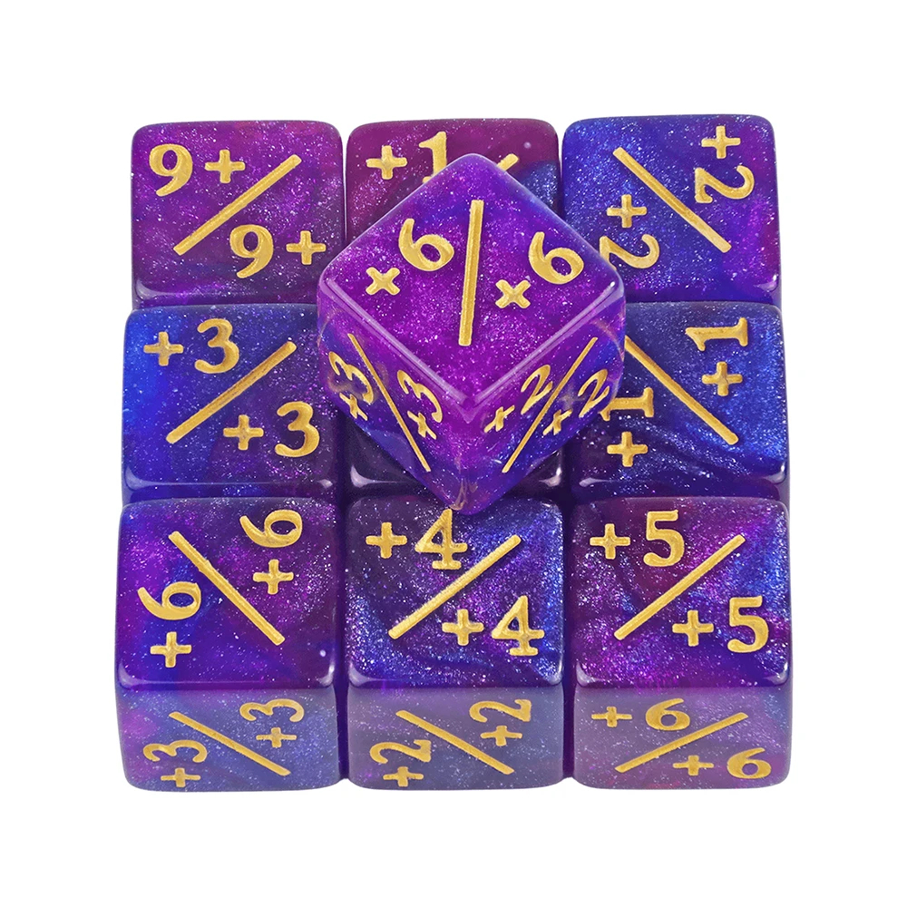 Dados D6 Marcador/Contador +1/+1 Azul e Rosa/Azul e Roxo Galáxia para RPG/TCG + Bolsa