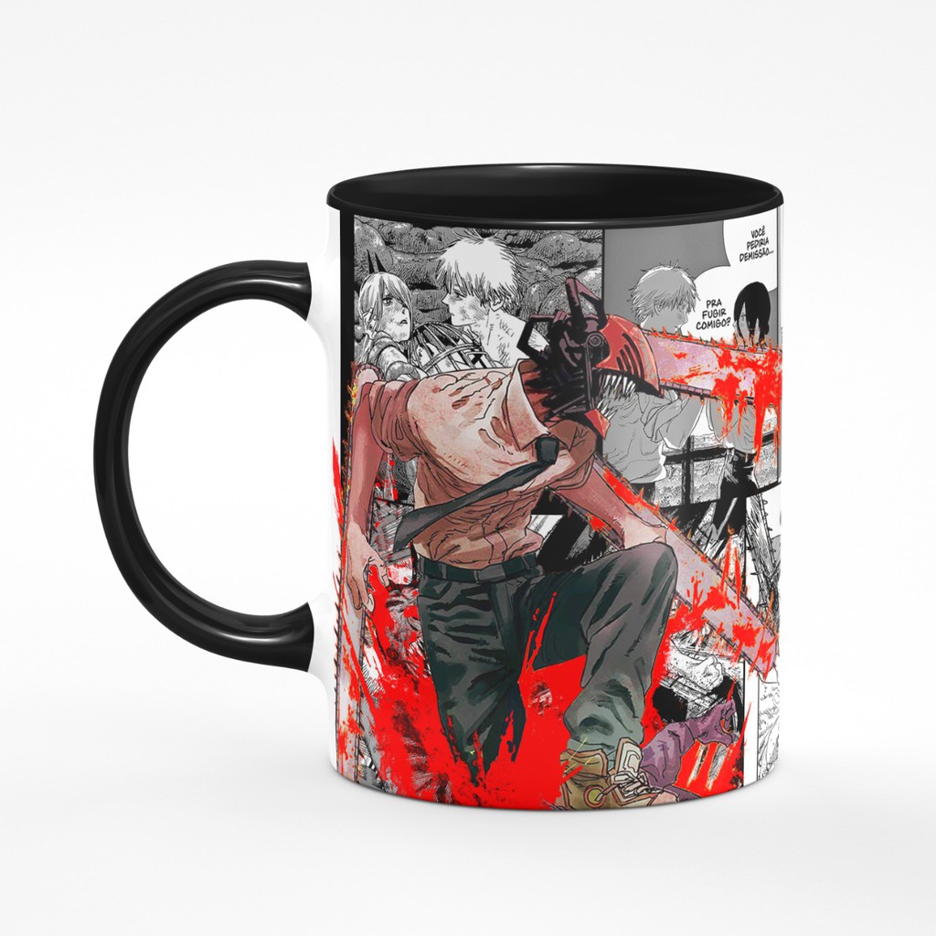 Caneca Chainsaw Man Pochita Denji Homem Motosserra Demônio Segurança Pública Xícara Anime Mangá Porcelana Polímero Makima