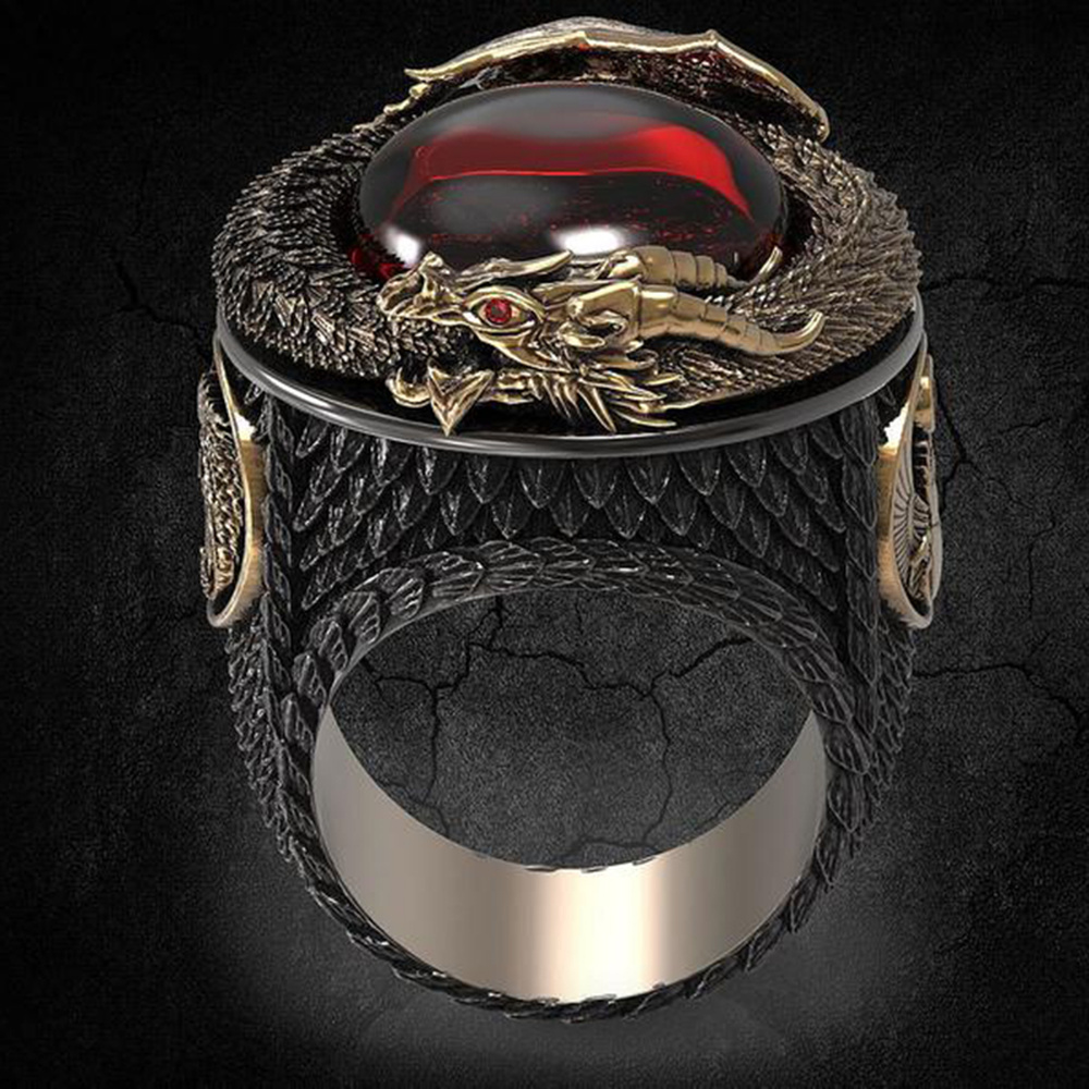3d Dragão Phoenix Titânio Aço Preto Ouro Rubi Red Cristal Moda Jóias Anéis Dos Homens Do Punk Animal