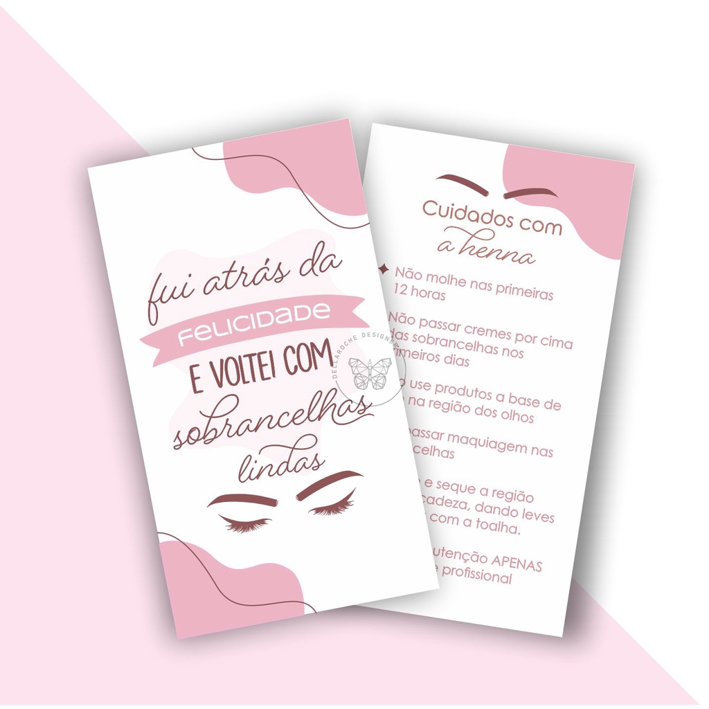 Cartão de agradecimento e cuidados com as sobrancelhas, brow lamination e henna, encomendas