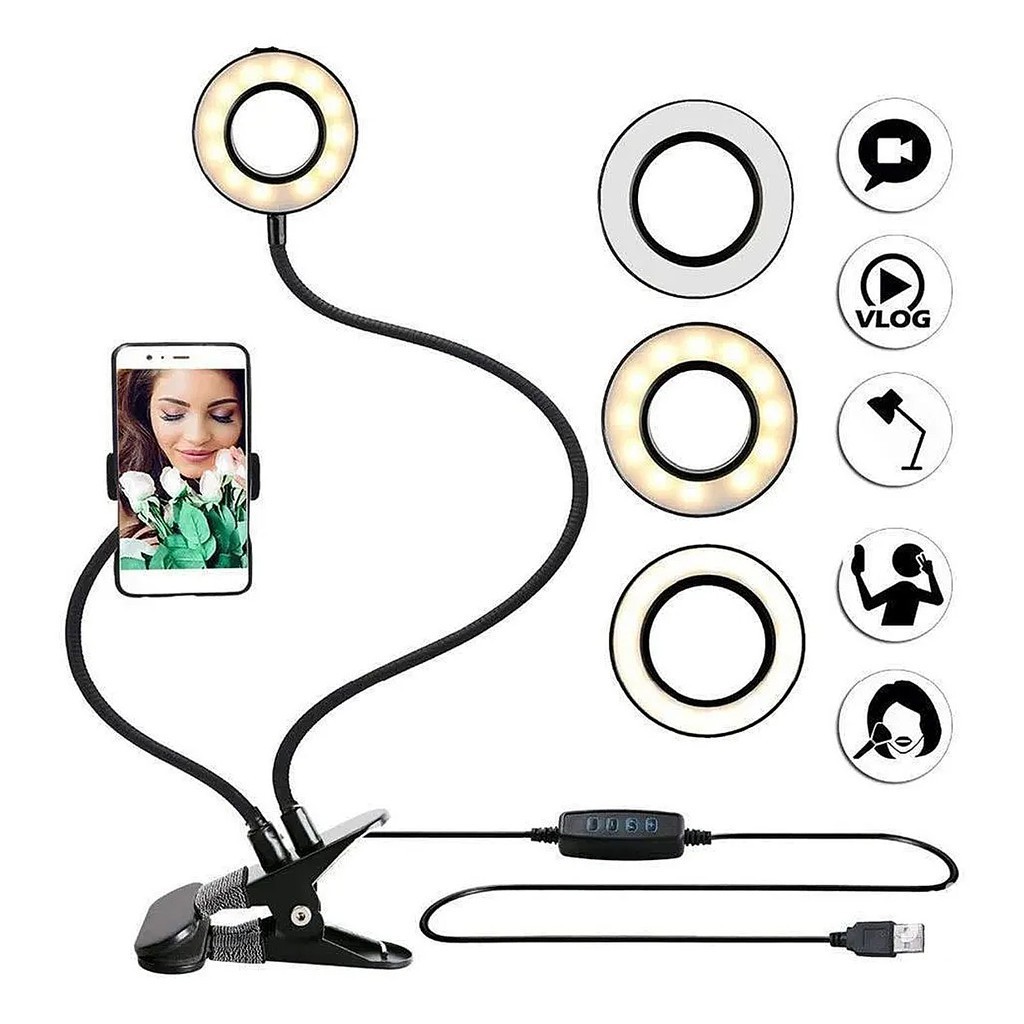 Ring light de Mesa 2 em 1 com suporte de Celular para maquiagem selfie live make abajur luminaria