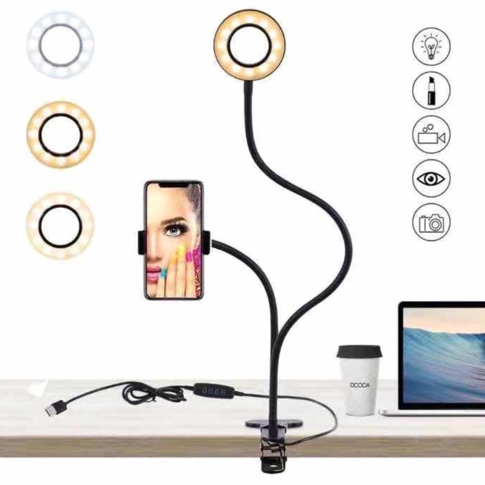 Ring light de Mesa 2 em 1 com suporte de Celular para maquiagem selfie live make abajur luminaria 618