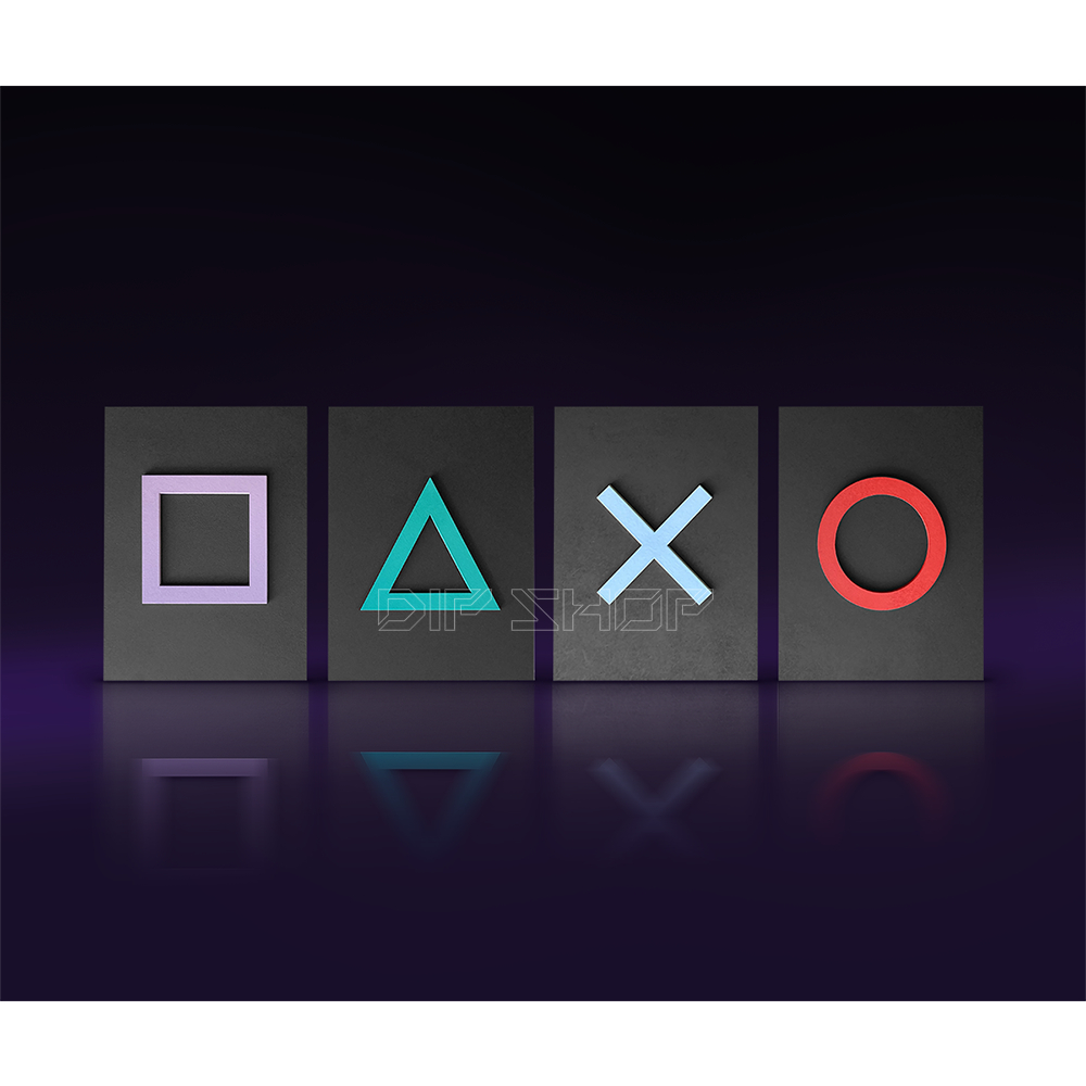 Kit 4 Placas Decorativas Gamer Decoração Geek Ps Icons Ícones Dos Botões Do Controle Playstation Setup Gamer