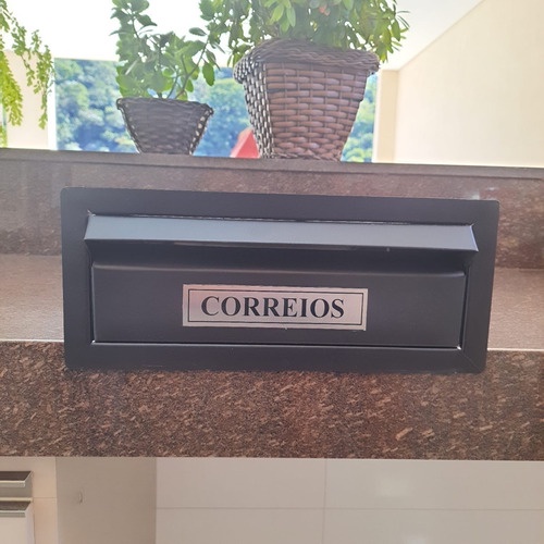 Caixa De Correio Aço Inox Preto Fosco Para Embutir Muro