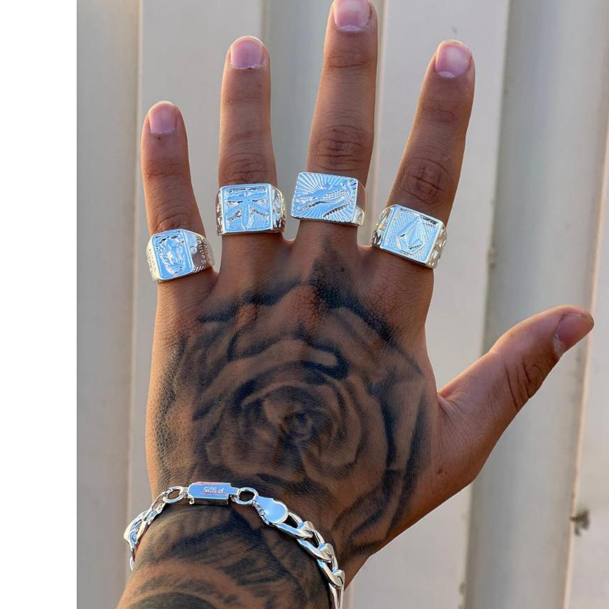 kit Dedeira Em Prata 925 Anel Masculino Prata Pulseira 10MM masculino Prata