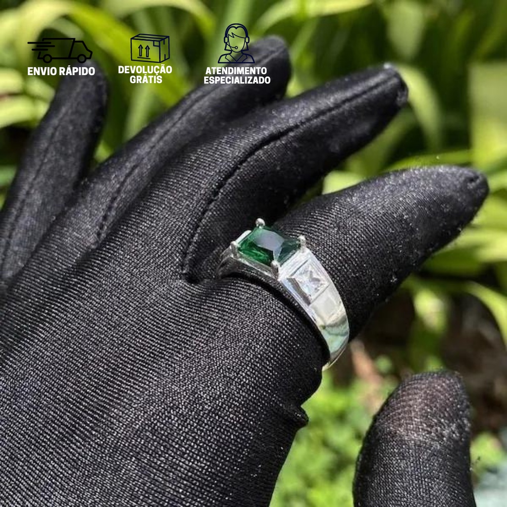 Anel de Prata Masculino Anel Com Pedra Verde Banhado a Prata 925 Anel De Formatura Dedeira