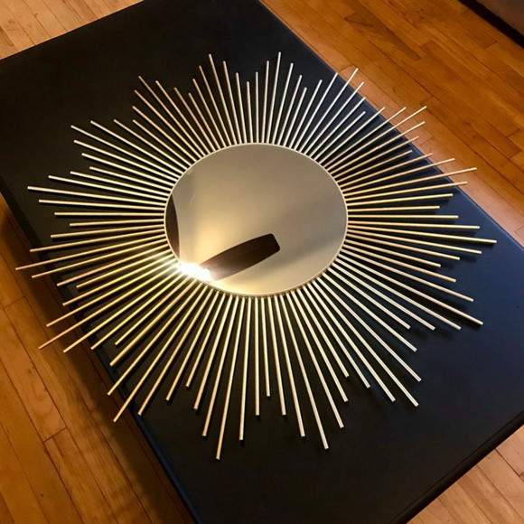 Espelho de Madeira Artesanal Sol 66cm Sunburst Decorativo Quarto Sala Hall Boho Vidro Original Diversas Cores Dourado Cobre Prata Bronze