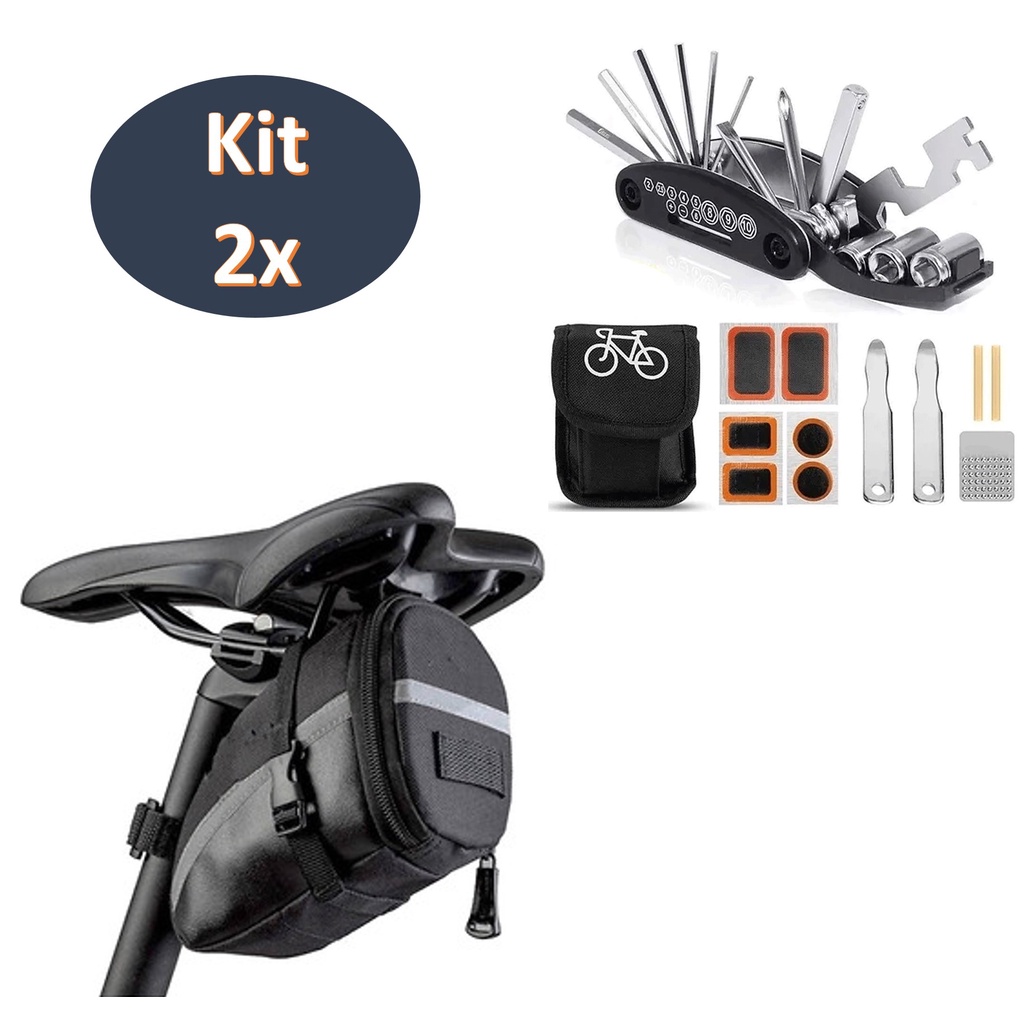 Kit De Reparo E Remendo Manutenção Para Bicicletas Com Chave Allen Bike + Bolsa Selim Porta Objetos Suporte Para Banco Bike Ciclismo