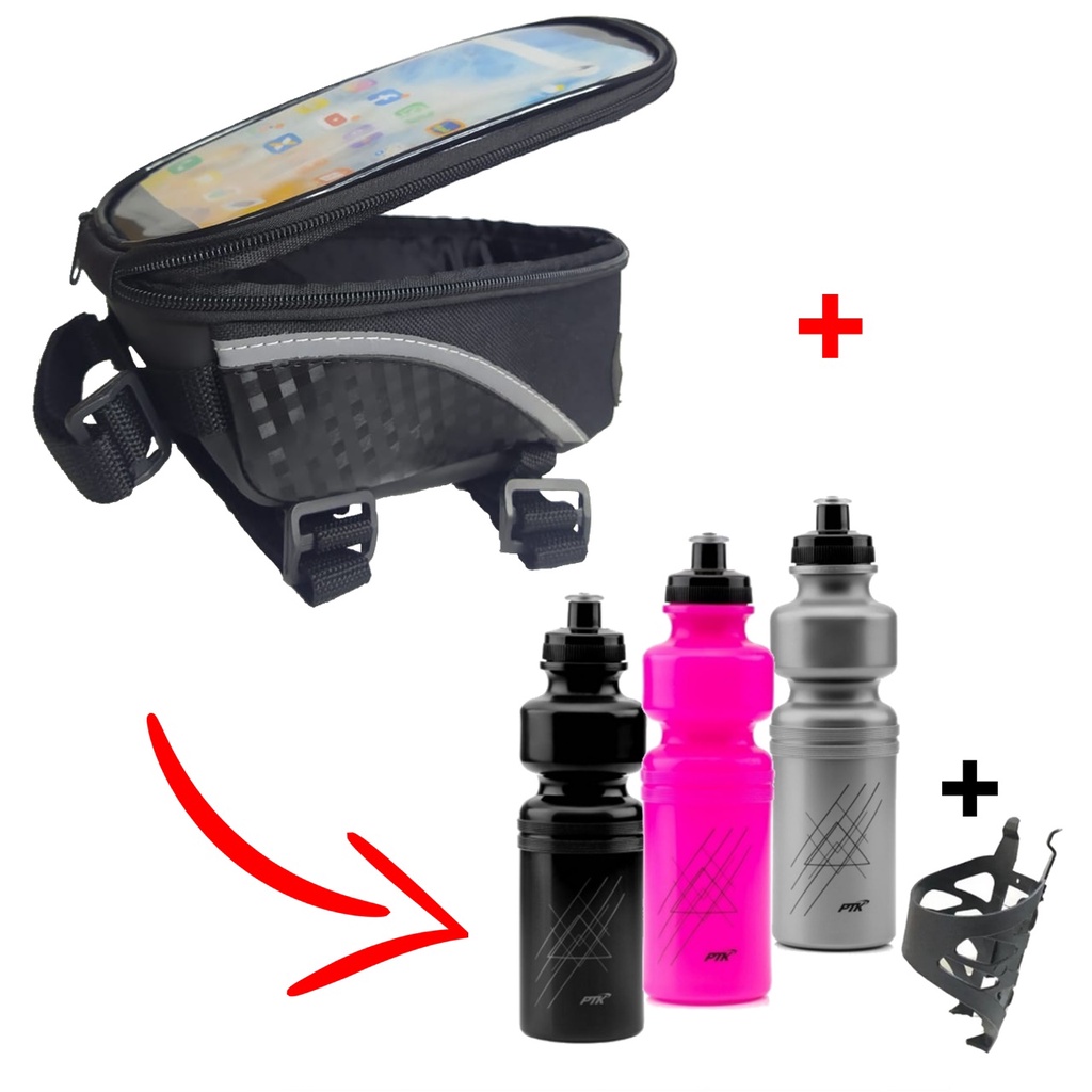 garrafa Squeeze de agua 750 ml para Bike / academia + suporte + Bolsa porta celular/acessorios