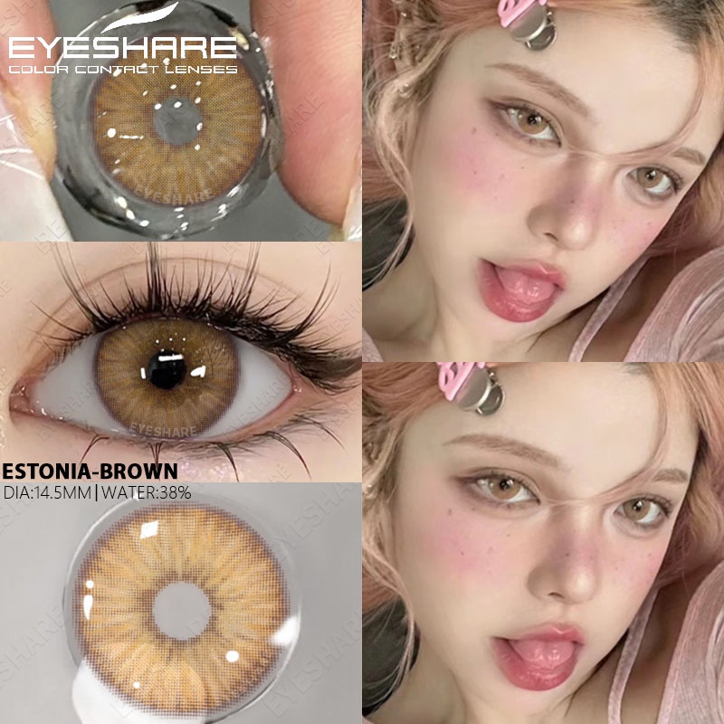 EYESHARE 1 Par Lentes De Contato Coloridas Naturais Para Os Olhos Coreano Azul Marrom Grande Olho Anual