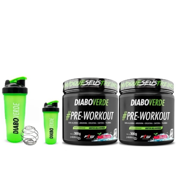 Pré treino Diabo Verde Pre workout 300g FTW + Container + Coqueteleira + 3x sachês