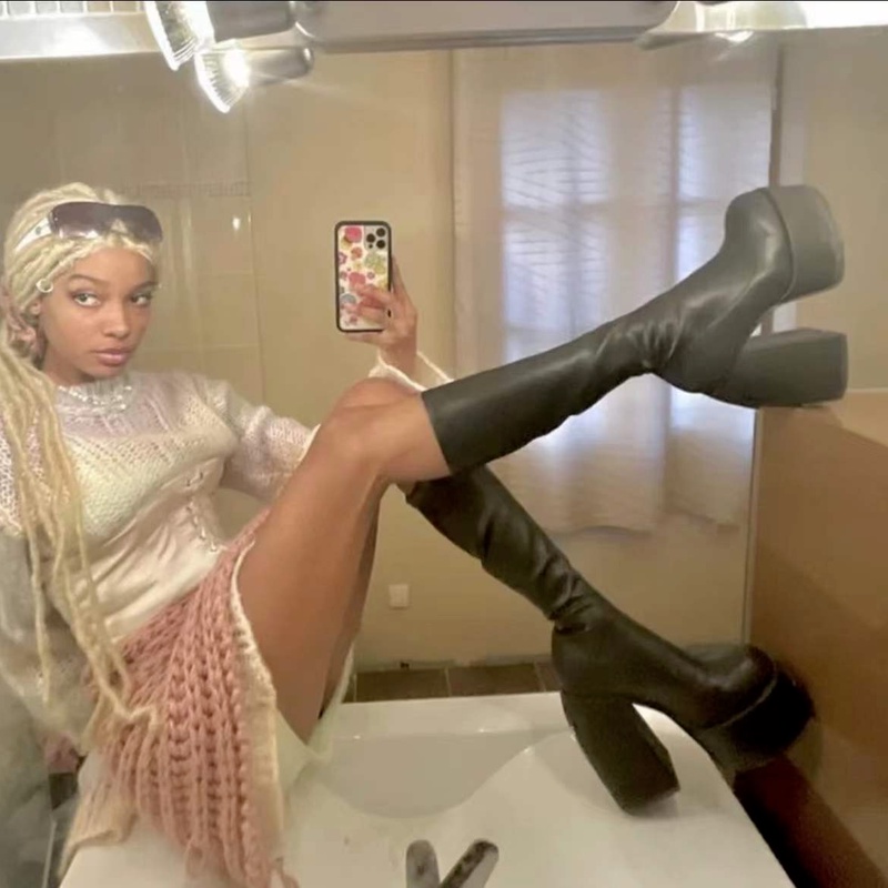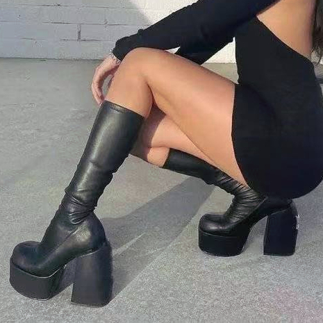 Bota Longa Feminina De Cano Alto De Couro Estilo Punk Gótico