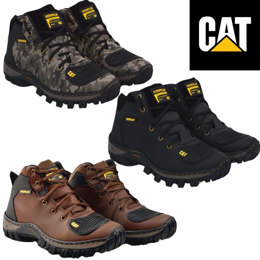 Bota CAT Motoqueiro Cano Médio Em Couro Com Sola De Borracha Para Uso Diário Proteção Na Ponta