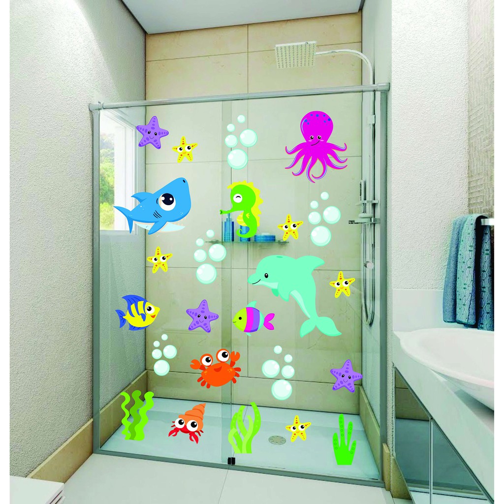 Adesivo Infantil Para Box De Banheiro E Parede Fundo Do Mar