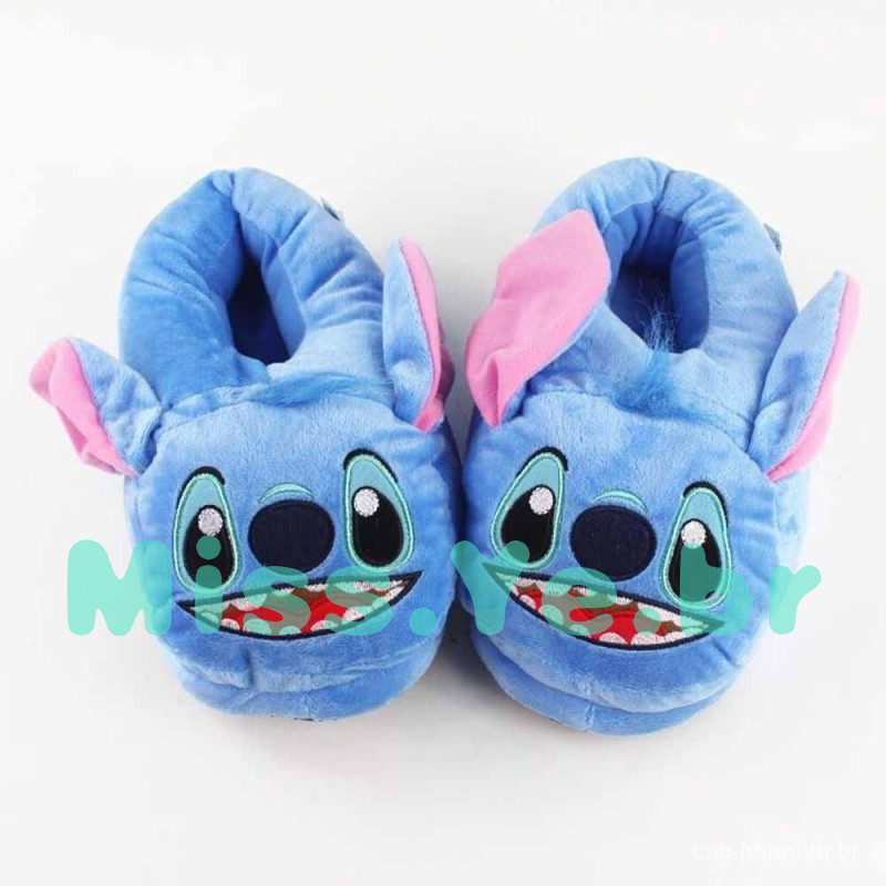 [24 horas de envio] 27 cm Lilo e Stitch Plush Llippers Inverno quente alienígena azul adulto adolescente